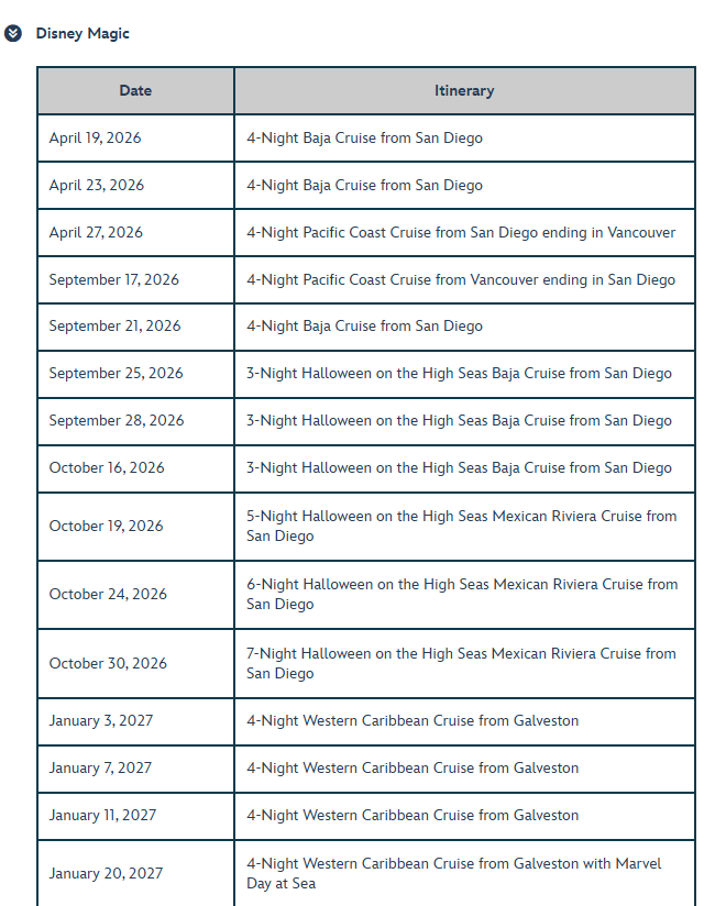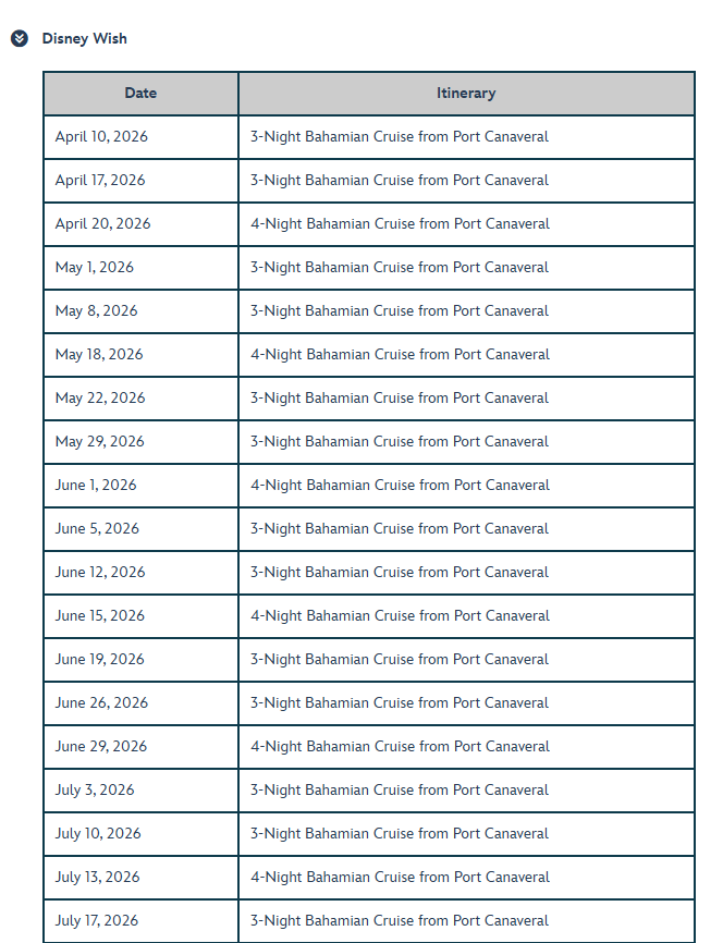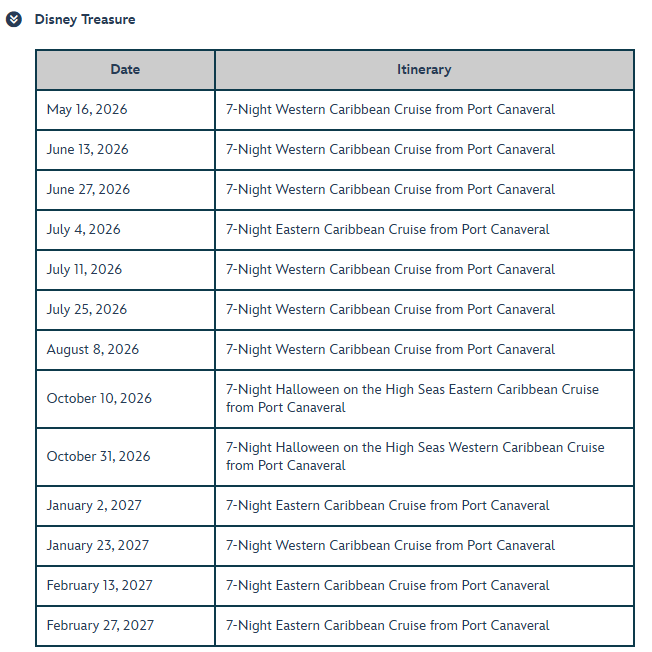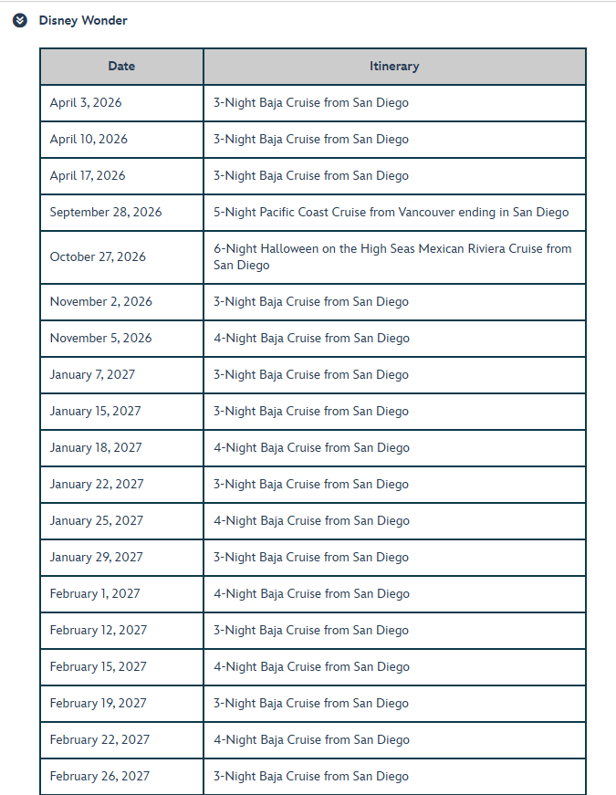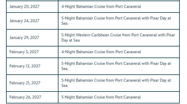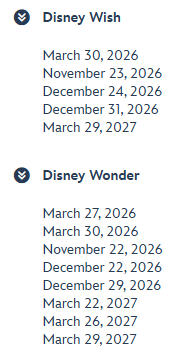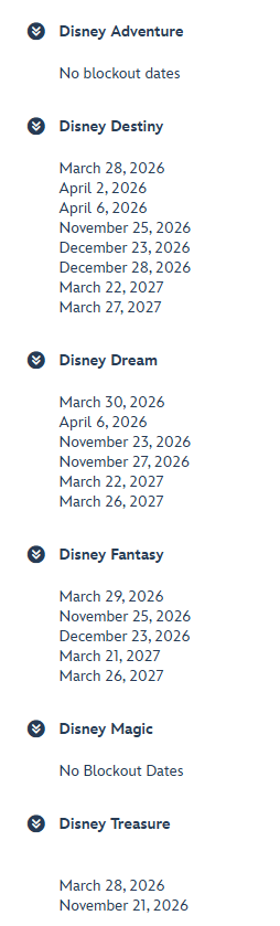 - Disney Vacation Club Points cannot be used to book sailing.