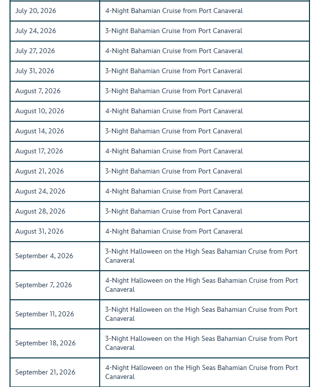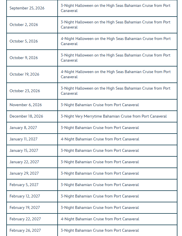 - Blockout dates apply, and eligible sailings are subject to availability and change without notice.