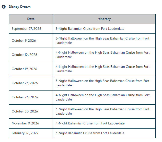 - Disney Vacation Club Points cannot be used to book sailing.
